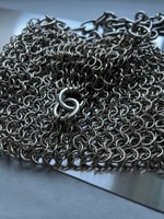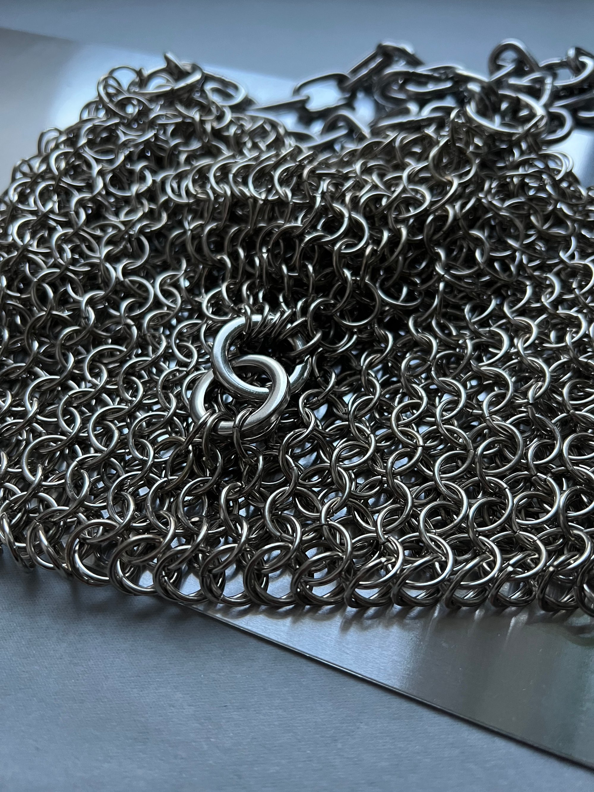 Handmade chainmail bag is made of nickel-plated silver steel rings. The nickel plating method prevents steel from corrosion and provides a silver shine. Chain-strap is stainless steel.