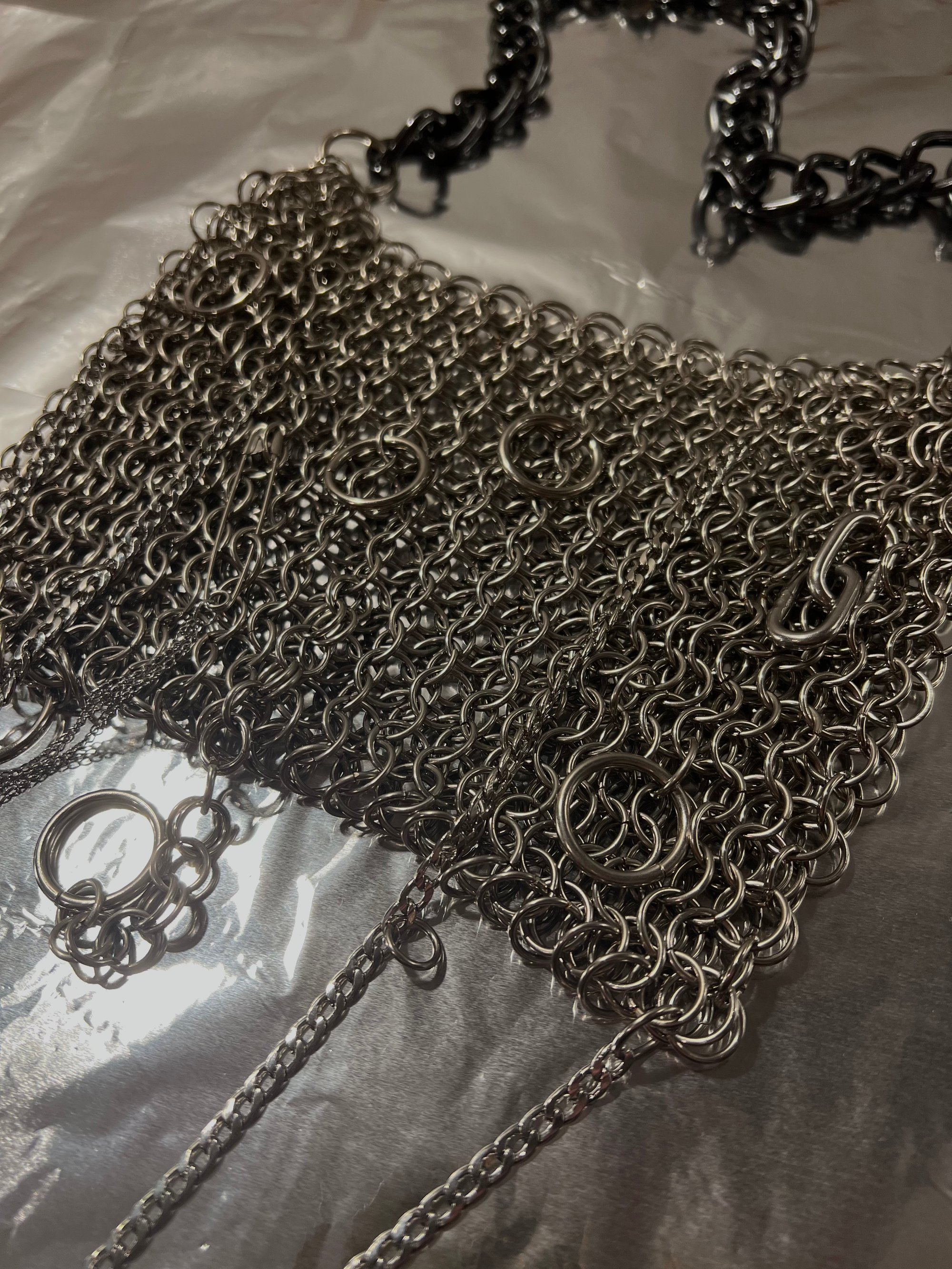 Handmade chainmail bag is made of nickel-plated silver steel rings - The nickel plating method prevents steel from corrosion and provides a silver shine. Acrylic chain is black with silver shine or just silver
