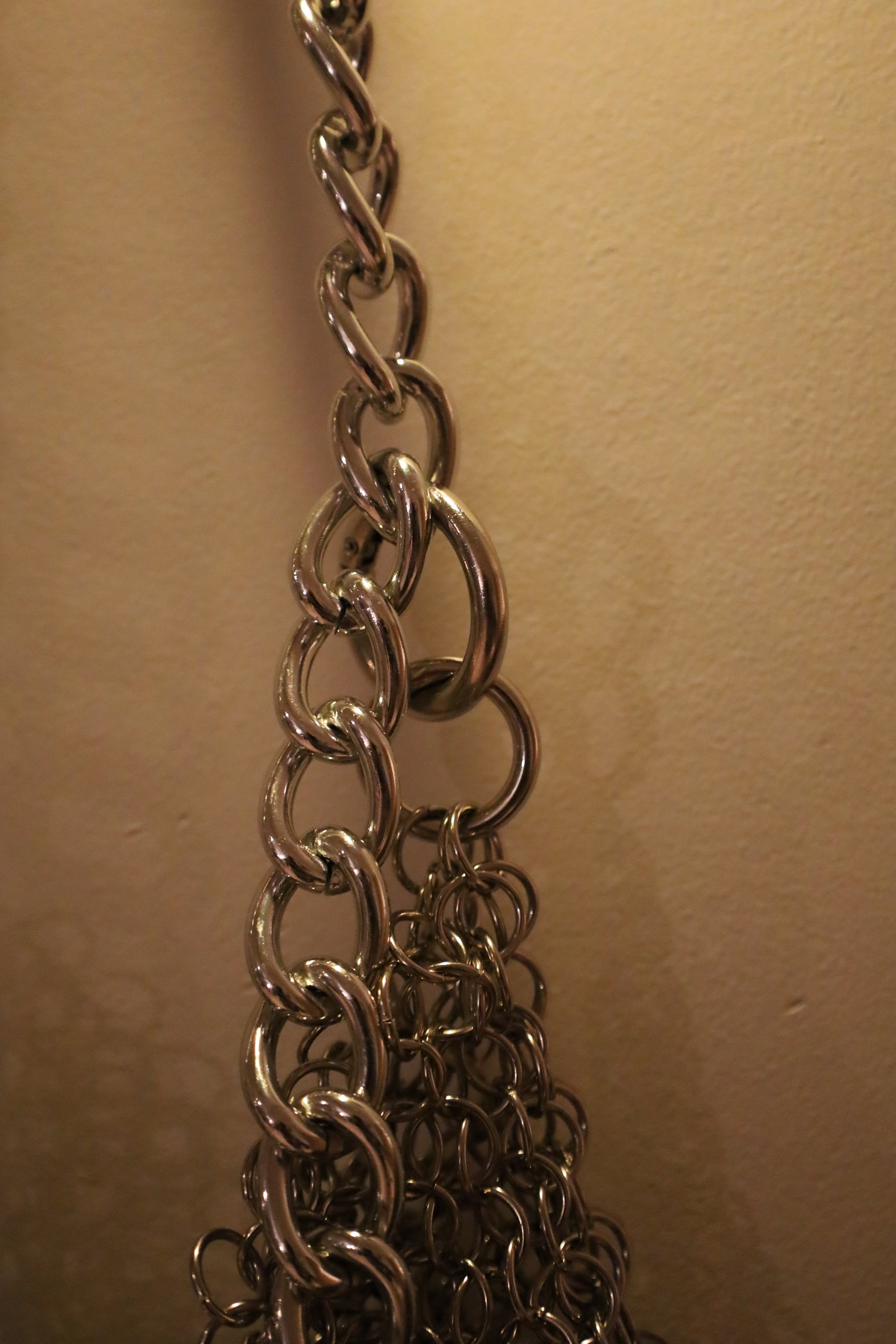 The dimensions given are the dimensions after filling the bag to its maximum capacity, the chainmail method is very flexible, the bag narrows and expands depending on the contents inside.