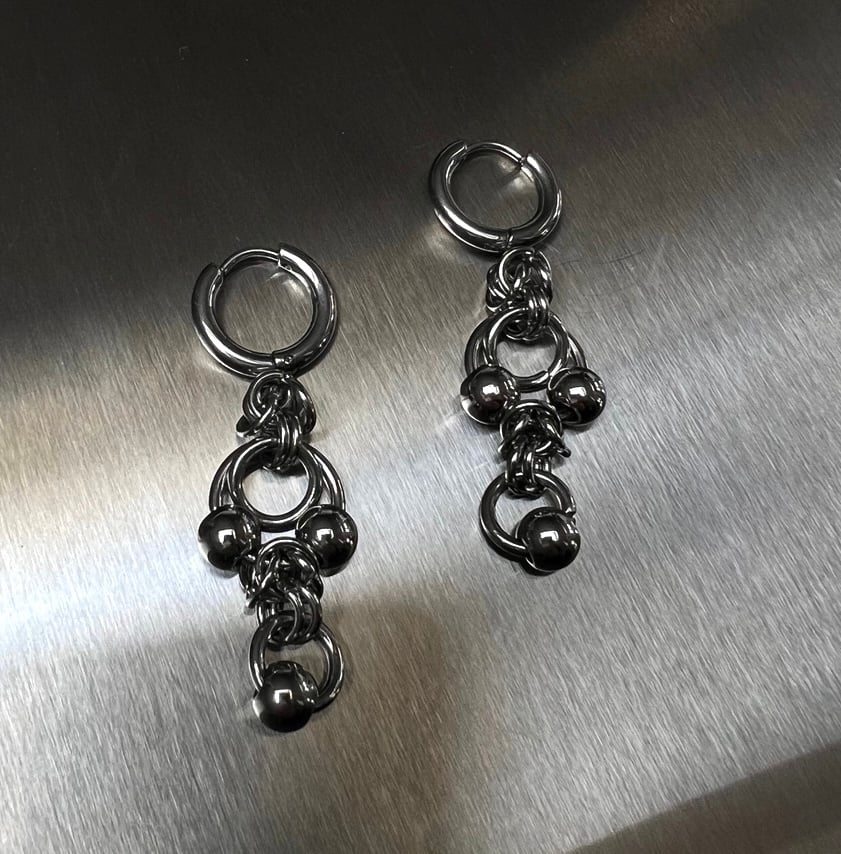 Chainmail handmade earrings made of hypoallergenic stainless steel jump rings and beads
