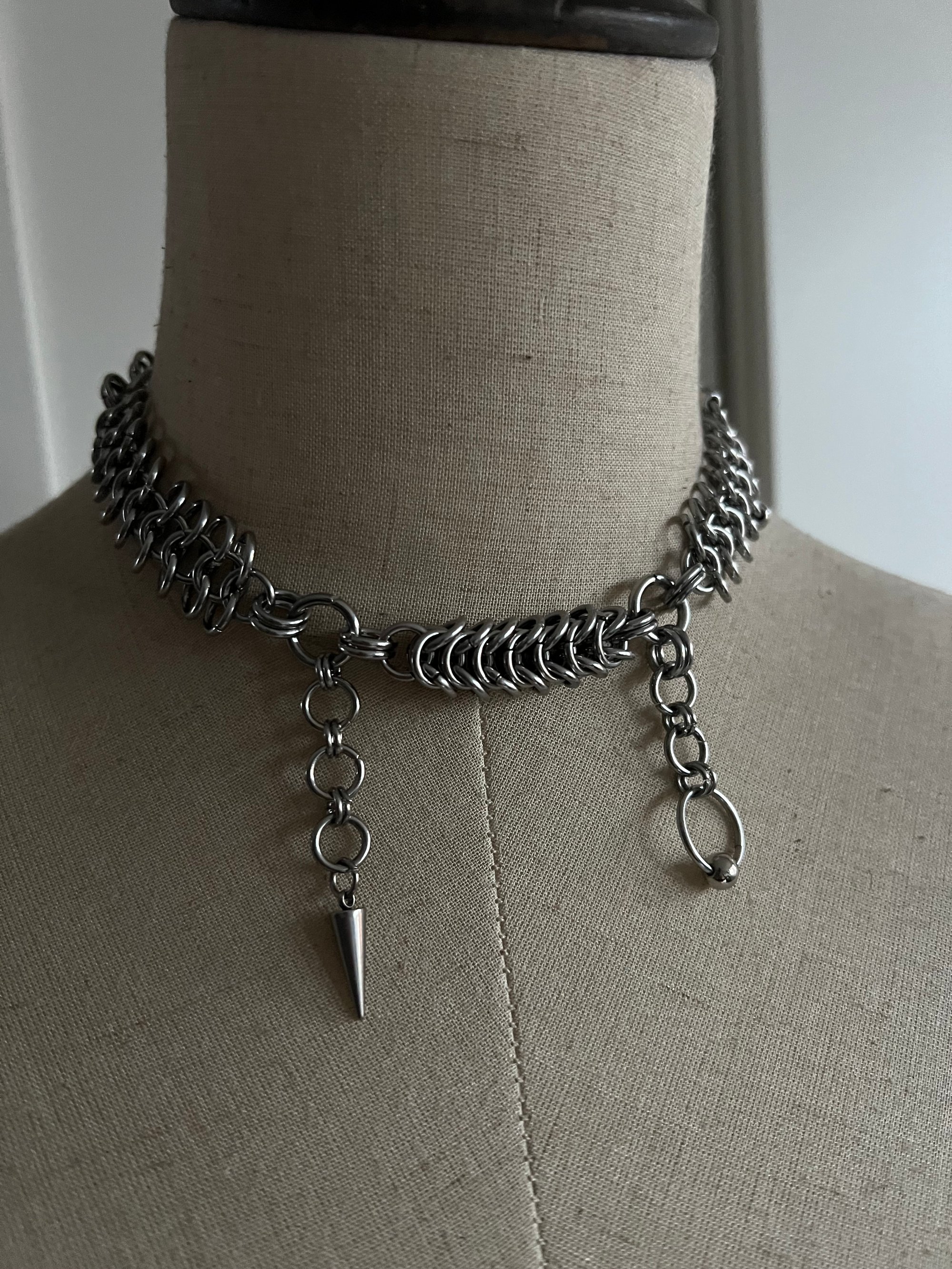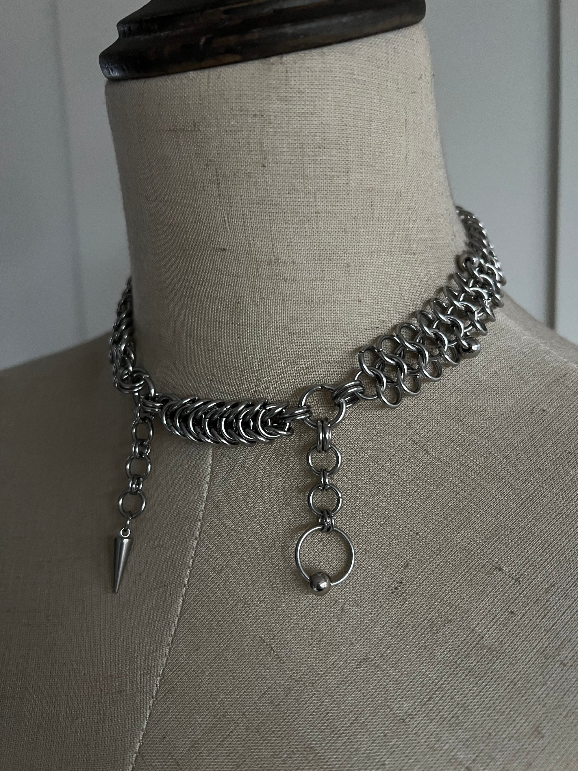Chainmail necklace made of hypoallergenic stainless steel jump rings