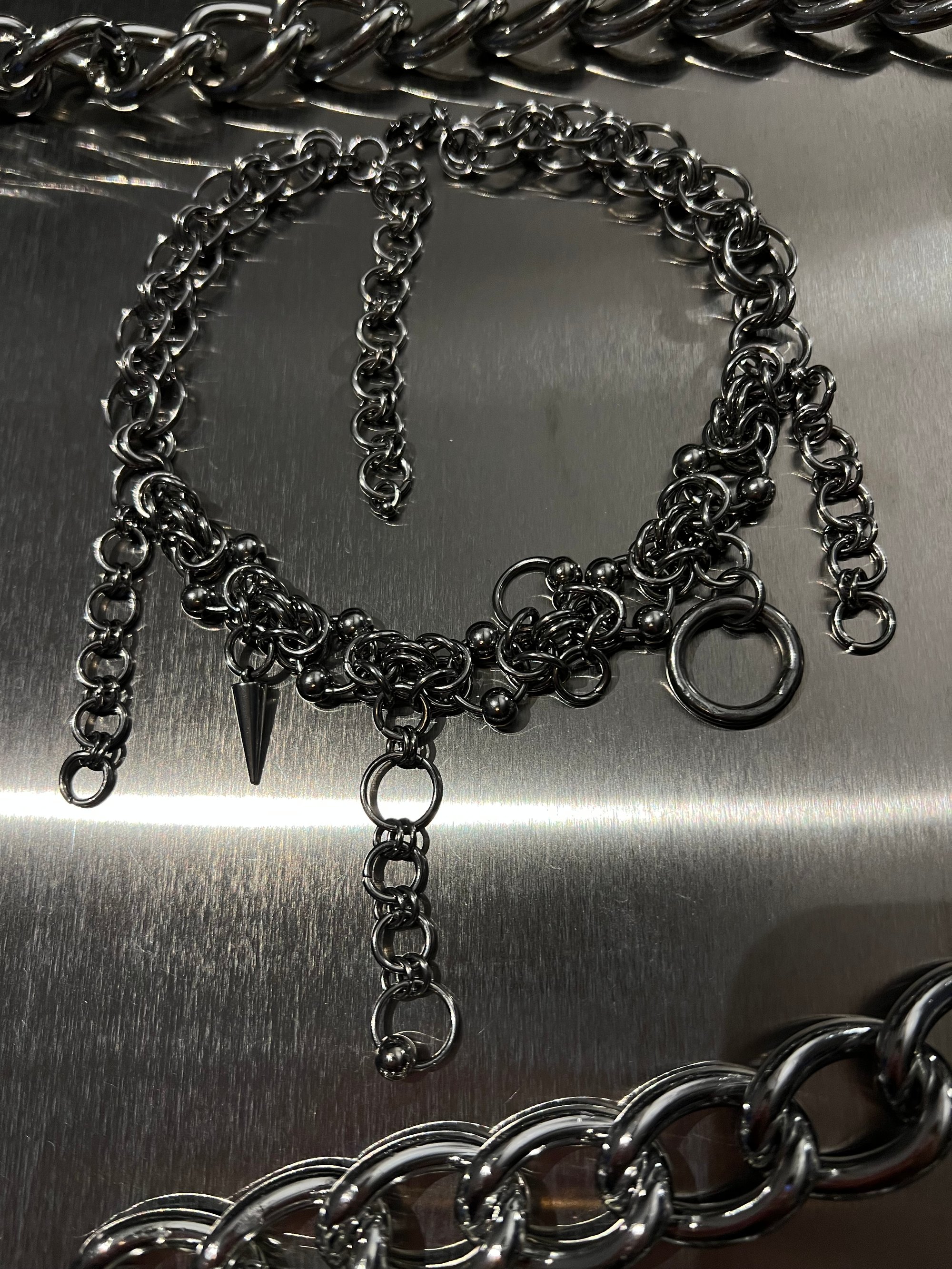 Chainmail necklace made of hypoallergenic stainless steel jump rings and beads