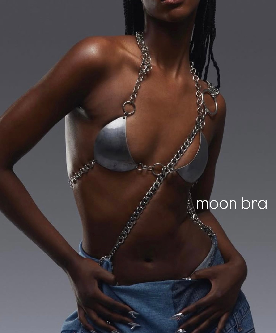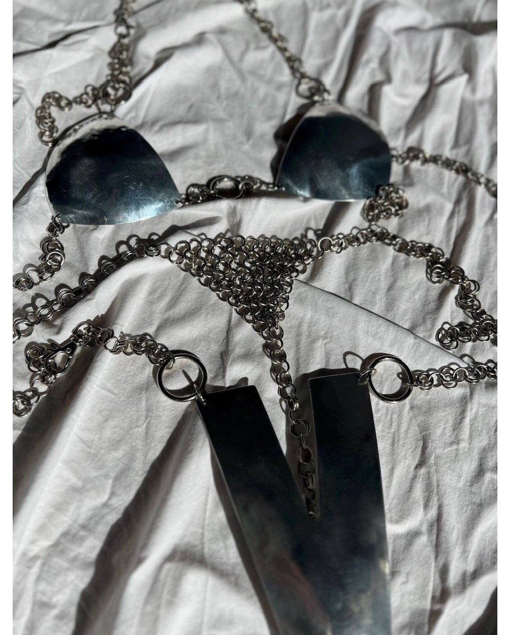 Handmade metal-aluminum bra, chains are from silver tone steel.